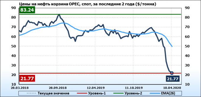 Страны ОПЕК+ на заседании в минувшее воскресенье договорились снизить нефтедобычу и призвать основных производителей, не входящих в альянс, обеспечить соразмерный и своевременный вклад в усилия, нацеленные на стабилизацию нефтяного рынка. Так, в мае-июне снижение нефтедобычи странами ОПЕК+ составит 9,7 млн б/с (на 23%), с июля до конца 2020 года — 7,7 млн б/с (на 18%), далее, до мая 2022 года — 5,7 млн б/с (на 14%).