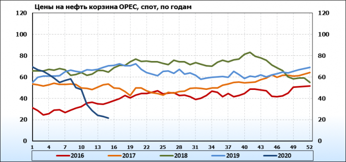 Майские фьючерсы на WTI дешевели на электронных торгах Нью-йоркской товарной биржи (NYMEX) к этому времени на $0,18 (0,91%) — до $19,69 за баррель. По итогам предыдущих торгов WTI осталась минимальном уровне с 7 февраля 2002 года.