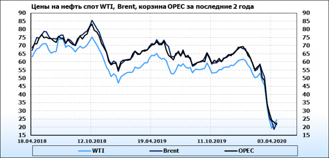 Страны ОПЕК+ на заседании в минувшее воскресенье договорились снизить нефтедобычу и призвать основных производителей, не входящих в альянс, обеспечить соразмерный и своевременный вклад в усилия, нацеленные на стабилизацию нефтяного рынка. Так, в мае-июне снижение нефтедобычи странами ОПЕК+ составит 9,7 млн б/с (на 23%), с июля до конца 2020 года — 7,7 млн б/с (на 18%), далее, до мая 2022 года — 5,7 млн б/с (на 14%).