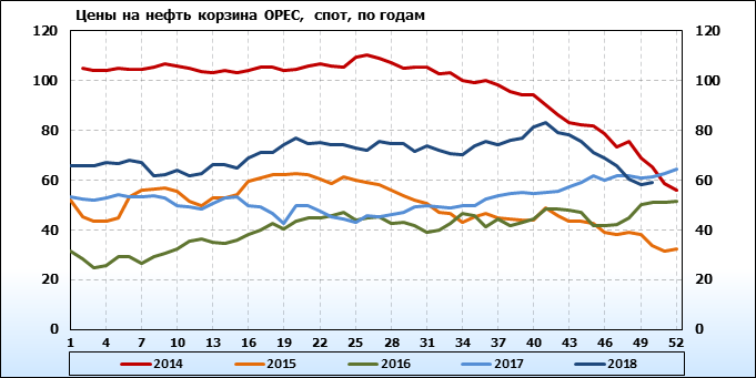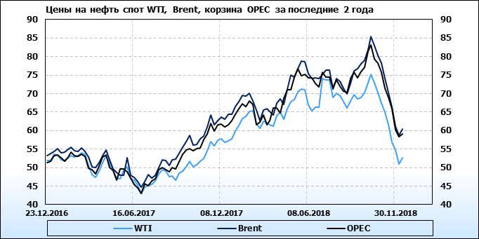 Цены спот на нефть по сортам и базисам. Данные на 17.12.2018