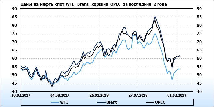Цены спот на нефть по сортам и базисам. Данные на 18.02.2019