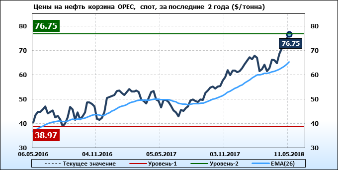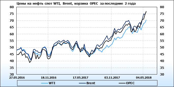 После максимумов прошлой недели, когда Brent поднималась $80,34 за баррель, а WTI преодолела $72,80 за баррель, цены отскочили до уровней начала месяца. Такое развитие событий было прогнозируемым, так рынок отреагировал на готовность ключевых участников договора ОРЕС+ скорректировать добычу в сторону увеличения для компенсации снижения предложения со стороны Ирана и Венесуэлы.