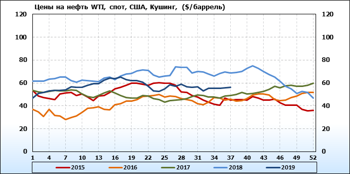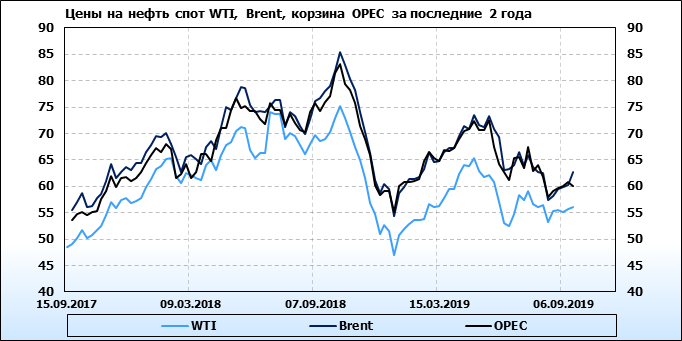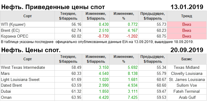 Цены спот на нефть по сортам и базисам. Данные на 20.09.2019