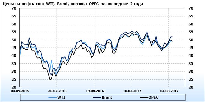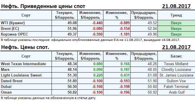 Цены спот на нефть по сортам и базисам. Данные на 21.08.2017