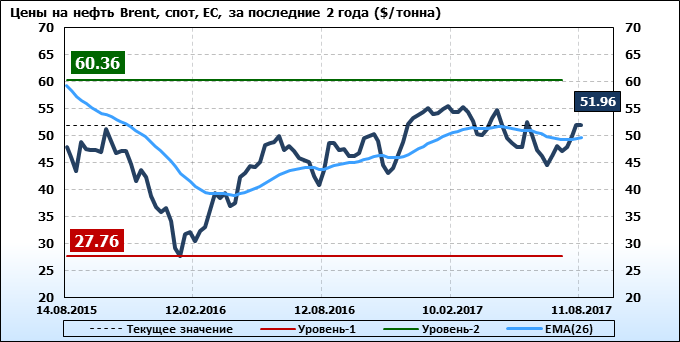 Цены на нефть сорта Brent с поставкой из портов ЕС упали на -0.08 до 51.96 долларов за баррель. Тренд на рынке Brent растущий.