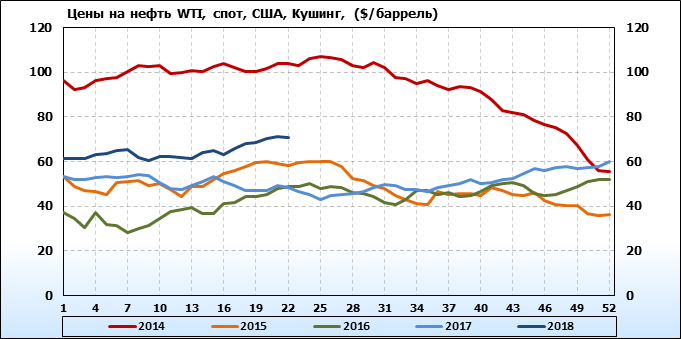 Цены на нефть сорта WTI с базиса поставки Кушинг упали на -0.32 до 70.98 долларов за баррель. Тренд на рынке WTI бычий.