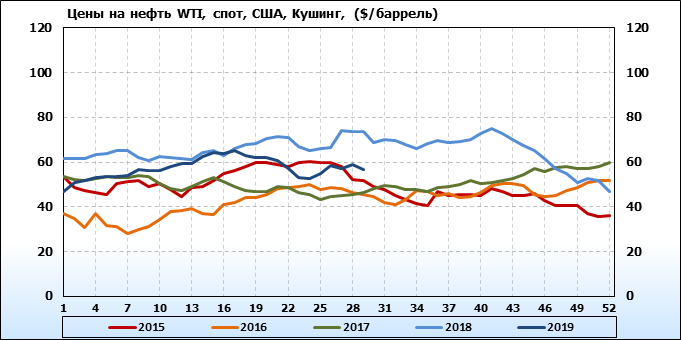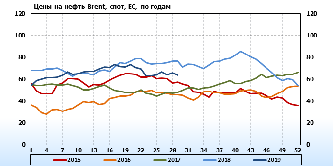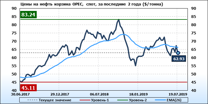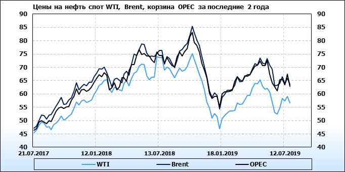 Цены спот на нефть по сортам и базисам. Данные на 26.07.2019