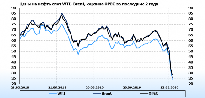 Цены спот на нефть по сортам и базисам. Данные на 27.03.2020
