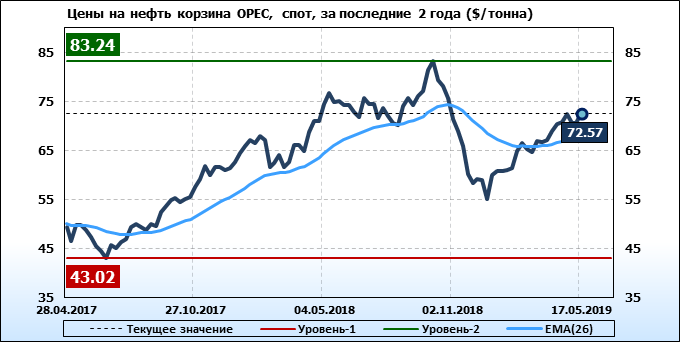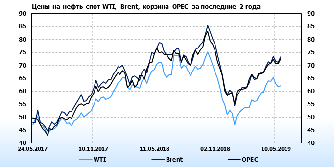 Цены спот на нефть по сортам и базисам. Данные на 27.05.2019