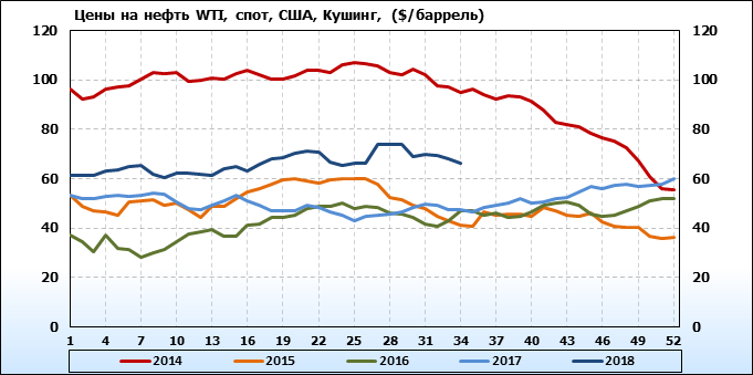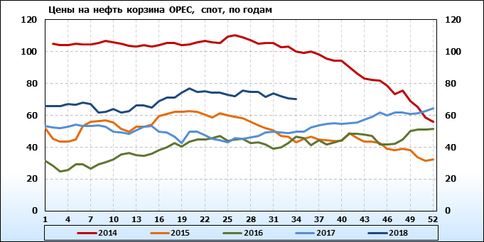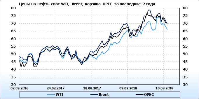 Цены спот на нефть по сортам и базисам. Данные на 27.08.2018