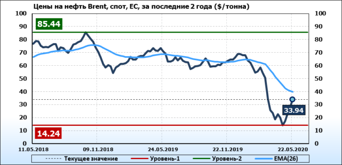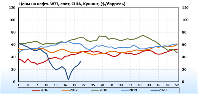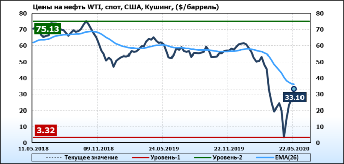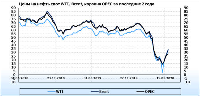 Фьючерсы на нефть WTI на июль на электронных торгах Нью-йоркской товарной биржи (NYMEX) к этому времени снизились в цене на $0,44 (1,31%) — до $33,27 за баррель.