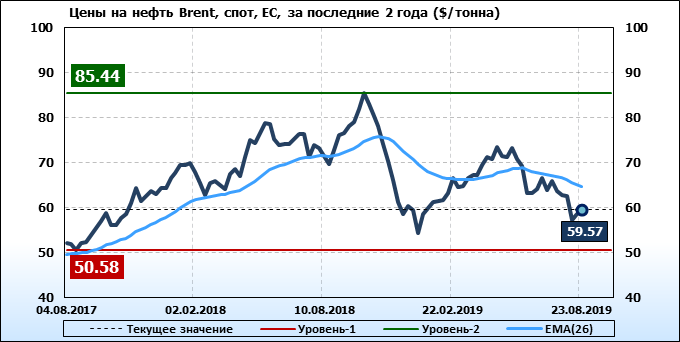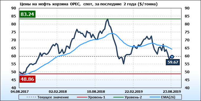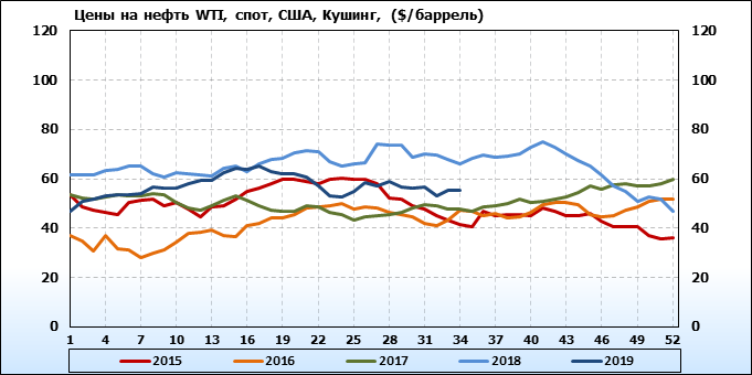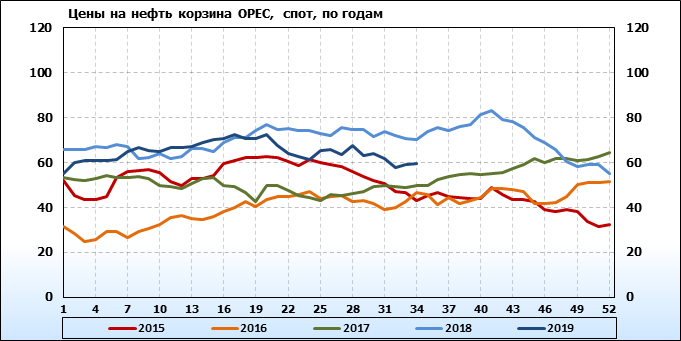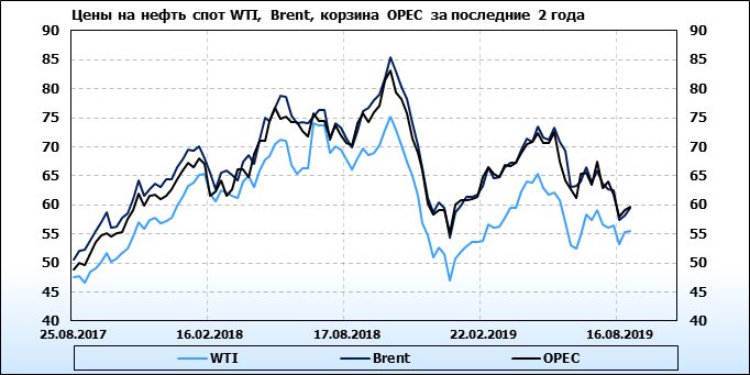 Цены спот на нефть по сортам и базисам. Данные на 30.08.2019
