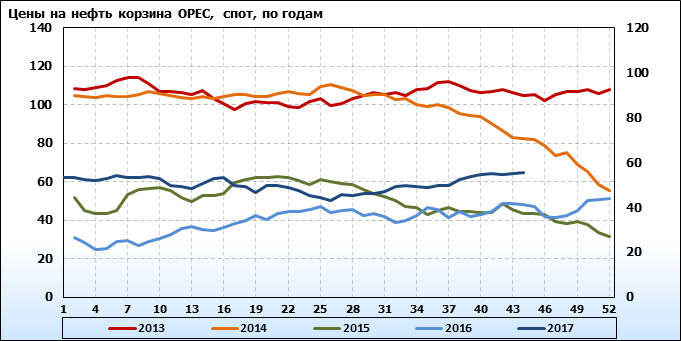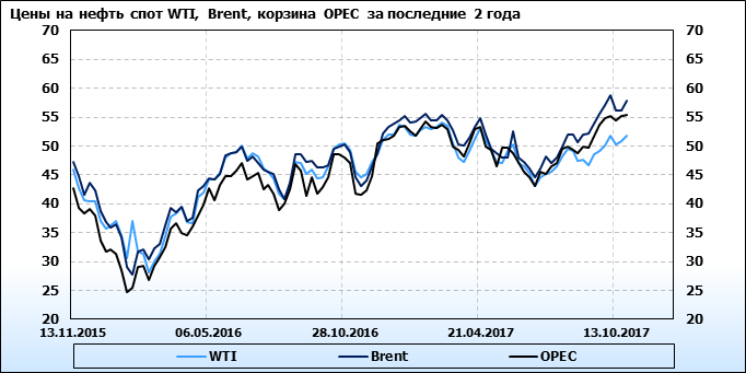 Цены спот на нефть по сортам и базисам. Данные на 30.10.2017
