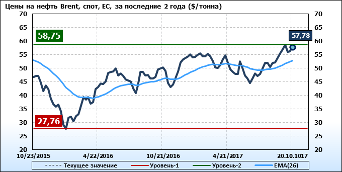 Как отмечает старший аналитик «Альпари» Вадим Иосуб, «нефть продолжает уверенно обновлять максимальные уровни за более чем двух летний период». «В (минувшую) пятницу торги начались у отметки $59,1 за баррель марки Brent, после чего последовало снижение к $58,5. Однако незадолго перед началом американской сессии оно сменилось бурным ростом, в результате которого цены достигли $60,2 и закончили пятничные торги выше отметки $60 за баррель», — говорится в обзоре эксперта.