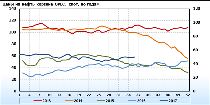 Цены спот на нефть по сортам и базисам. Данные на 4.09.2017