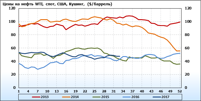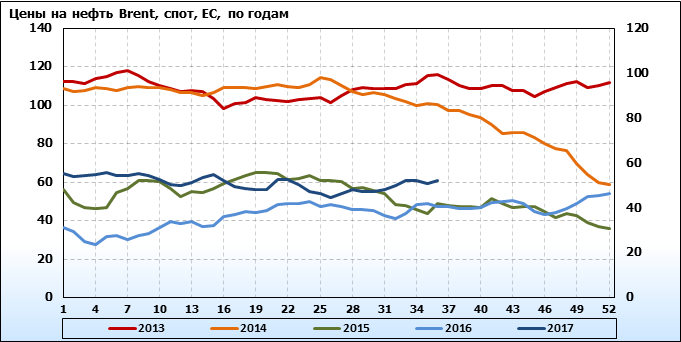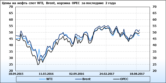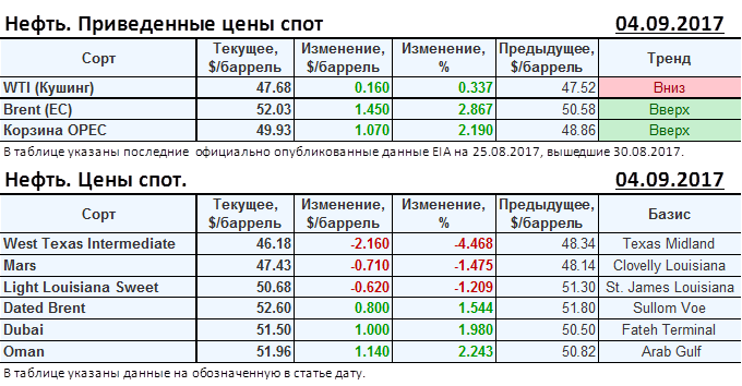 Цены спот на нефть по сортам и базисам. Данные на 4.09.2017