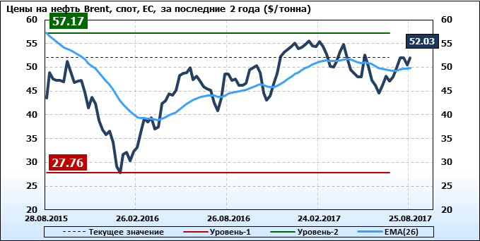 Цены на нефть сорта Brent с поставкой из портов ЕС выросли на 1.45 до 52.03 долларов за баррель. Тренд на рынке Brent растущий.