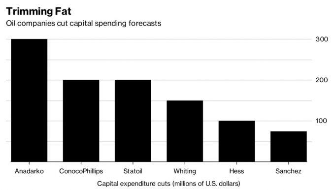 Другие бурильщики — Whiting Petroleum Corp. из региона Bakken и Sanchez Energy Corp., специализирующиеся на добыче сланца в Eagle Ford в штате Texas также объявили о сокращениях бюджета. Ранее компания Anadarko Petroleum Corp. заявляла о том, что бюджет на бурение скважин снизился на $300 миллионов по сравнению с изначальным — это составляет 6 процентов.