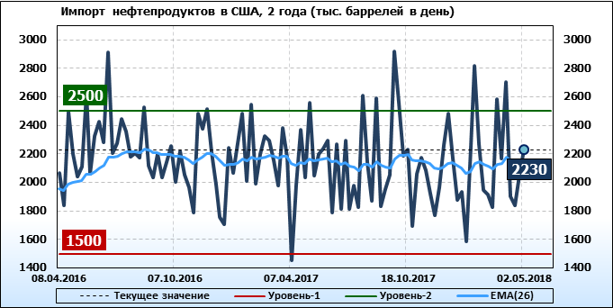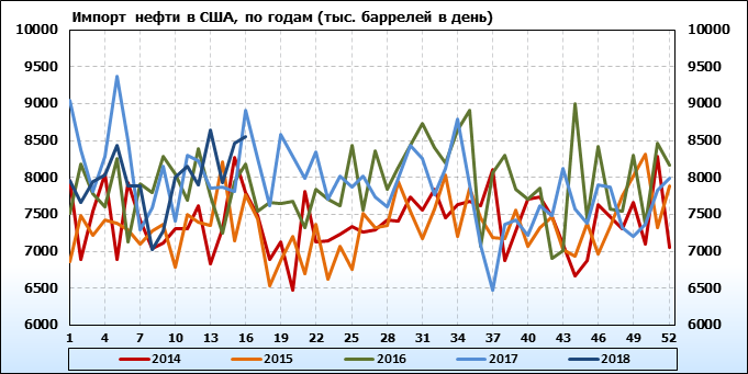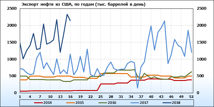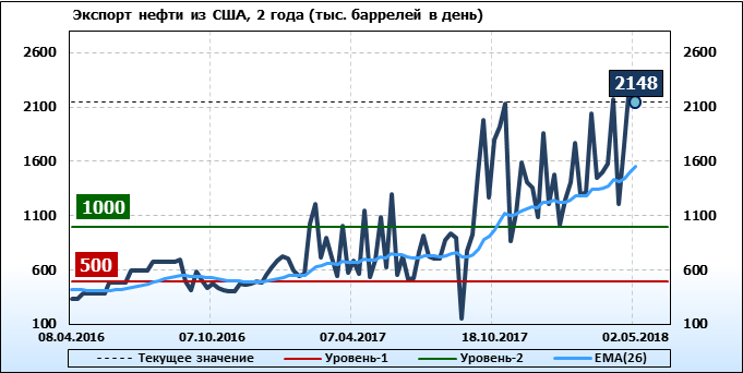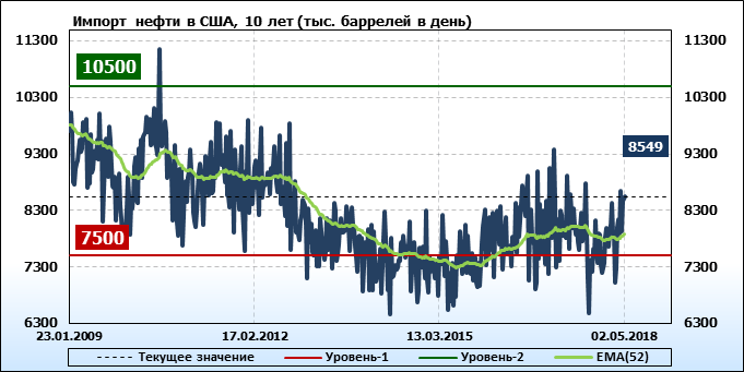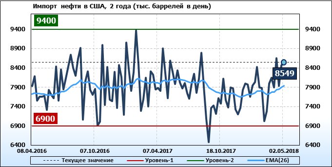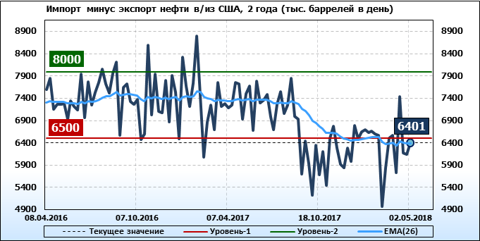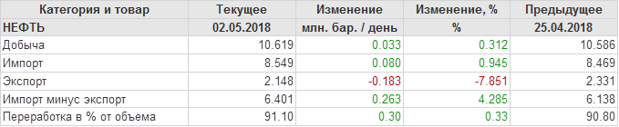 Добыча, импорт, экспорт нефти. США. EIA. Данные на 02.05.2018