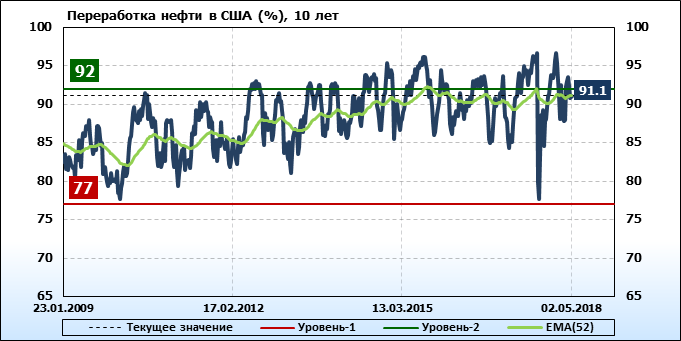 Коммерческие запасы нефти в США, EIA. Данные на 02.05.2018. Подробно