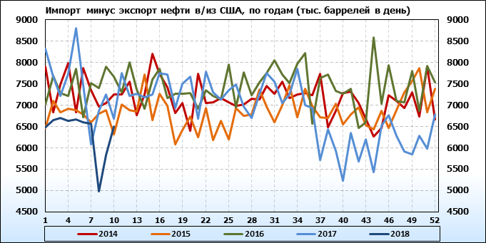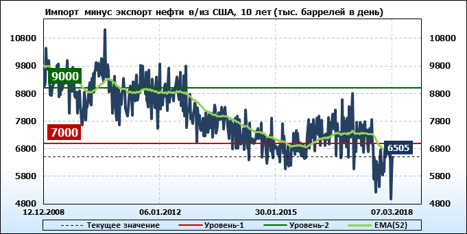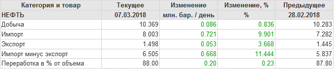 Добыча, импорт, экспорт нефти. США. EIA. Данные на 07.03.2018