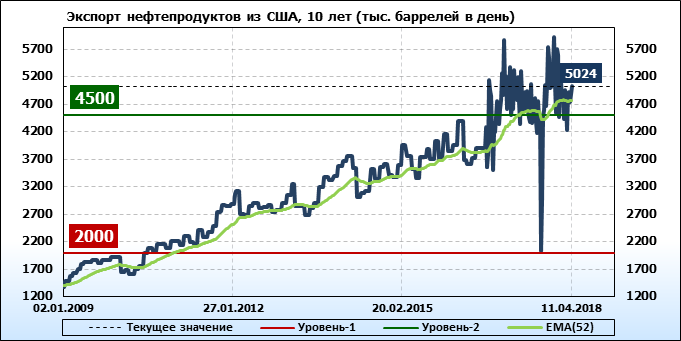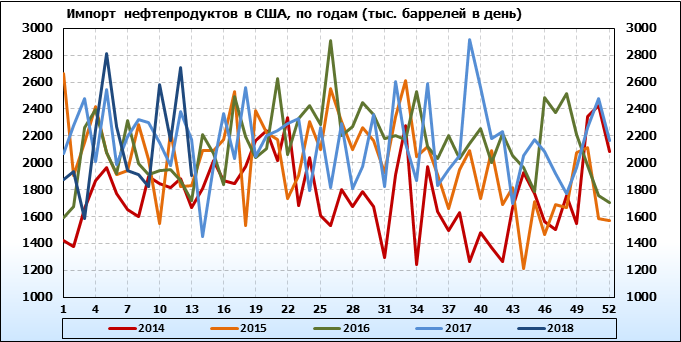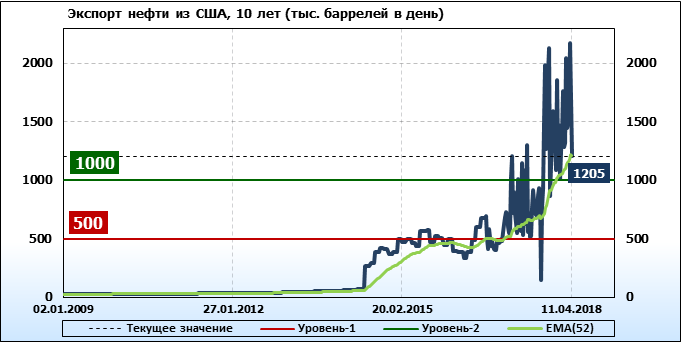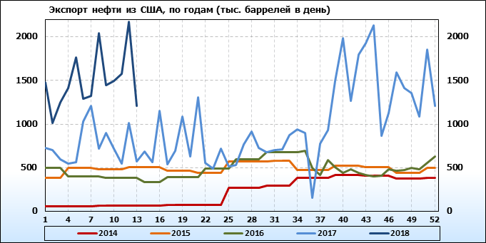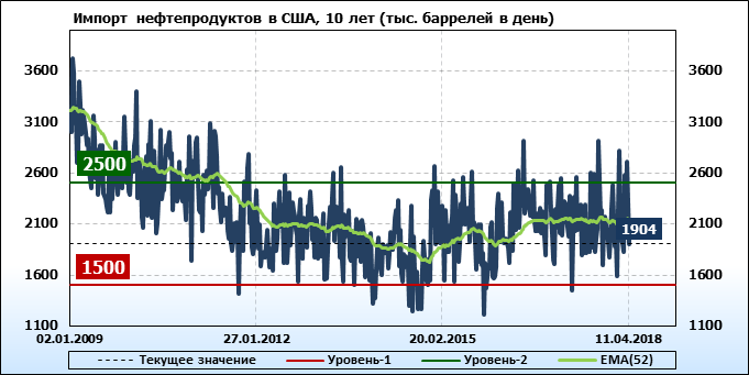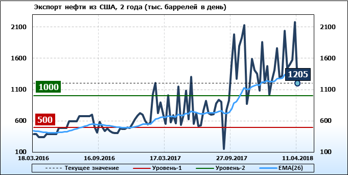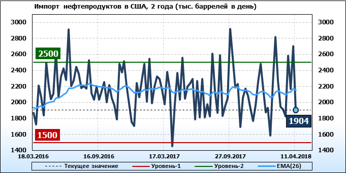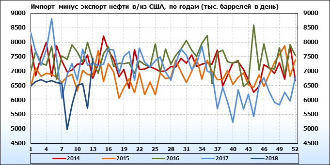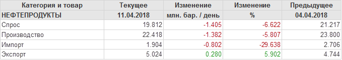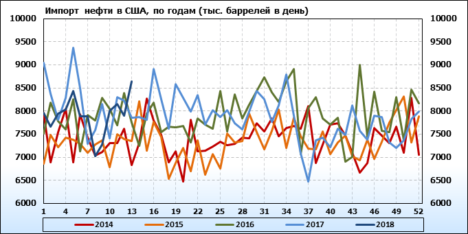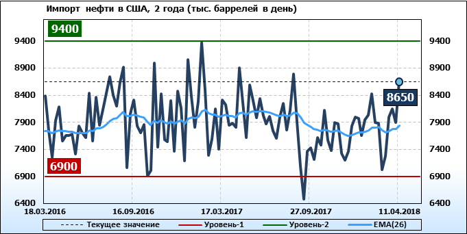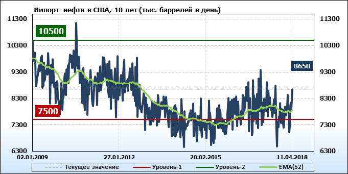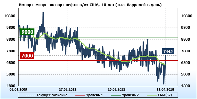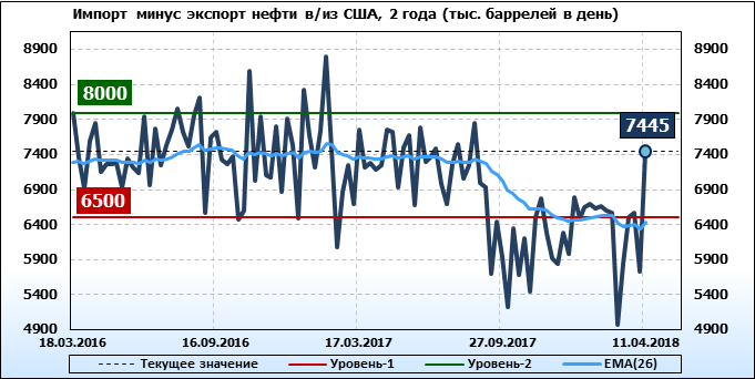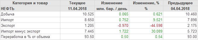 Добыча, импорт, экспорт нефти. США. EIA. Данные на 11.04.2018