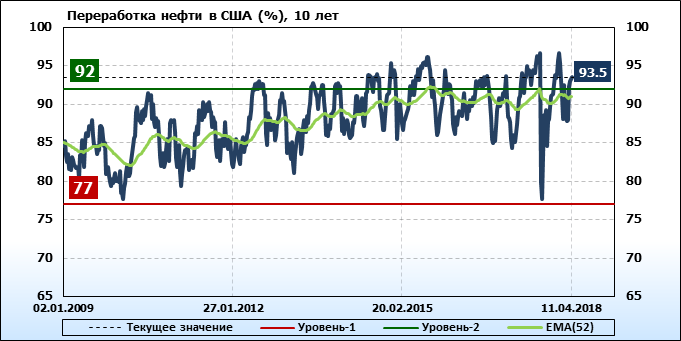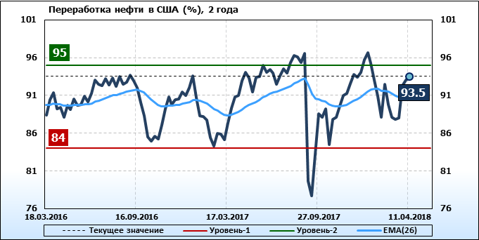 Коммерческие запасы нефти в США, EIA. Данные на 11.04.2018. Подробно
