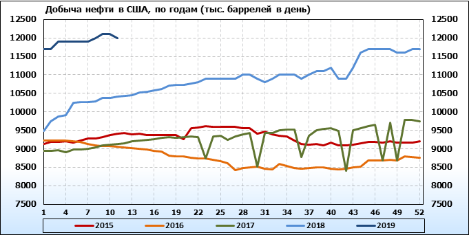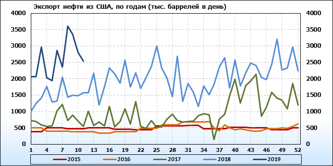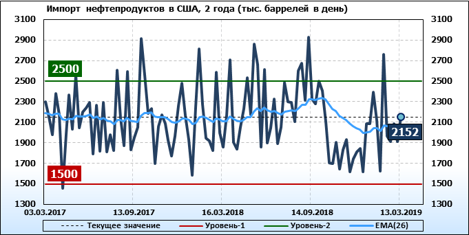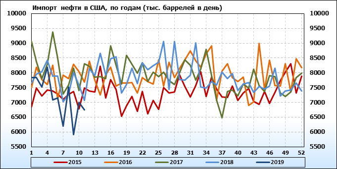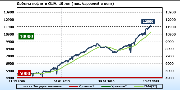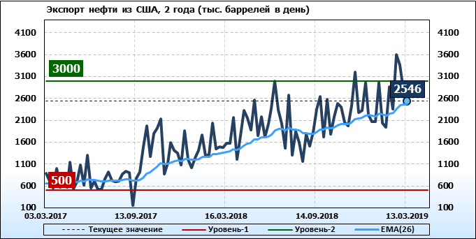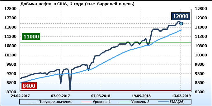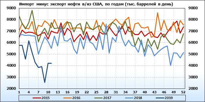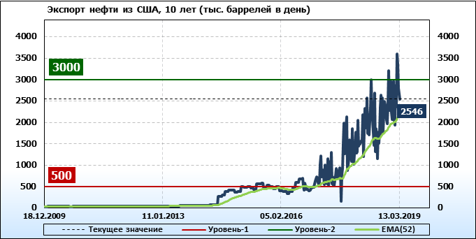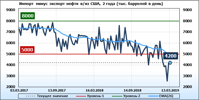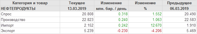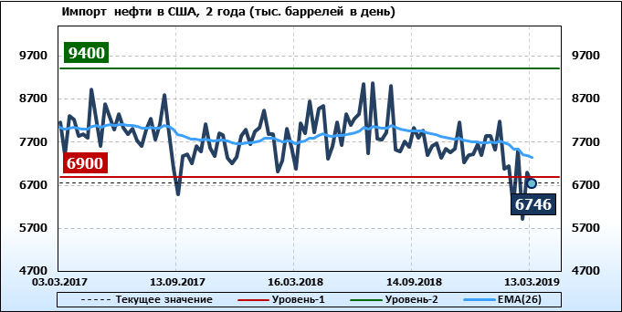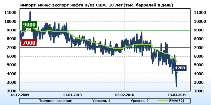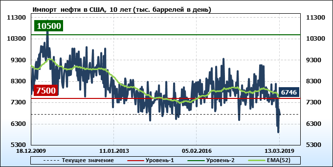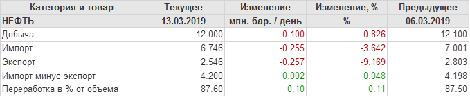 Добыча, импорт, экспорт нефти. США. EIA. Данные на 13.03.2019