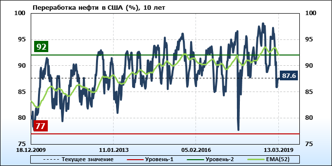 Коммерческие запасы нефти в США, EIA. Данные на 13.03.2019