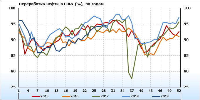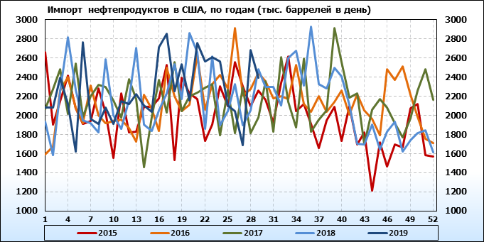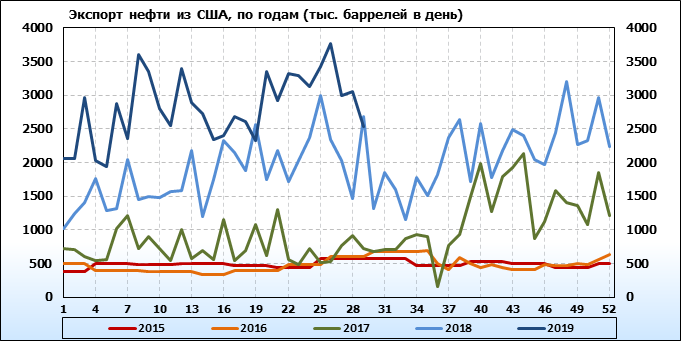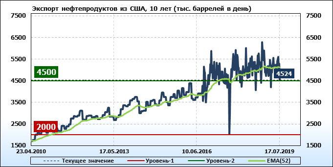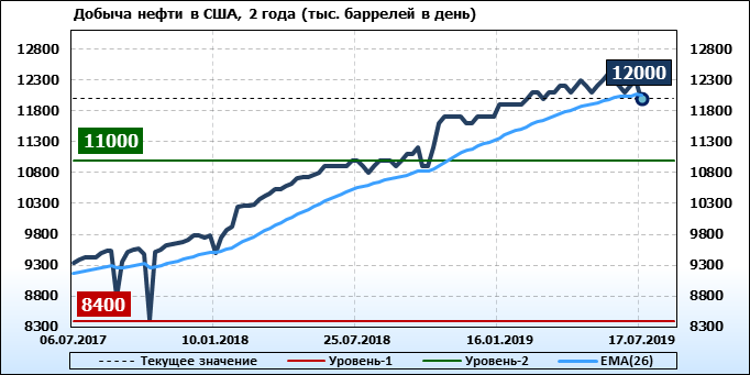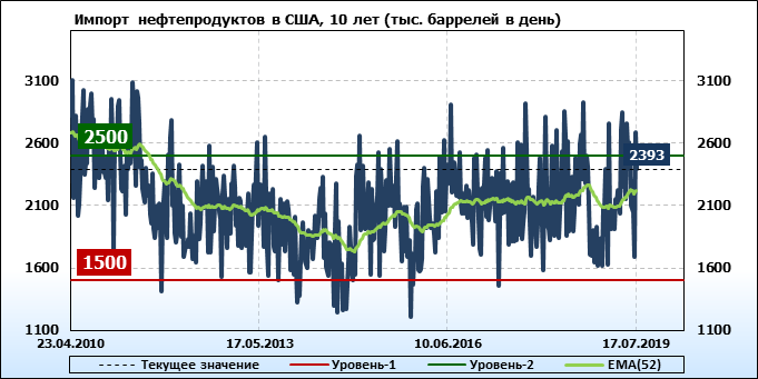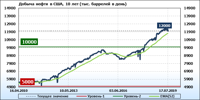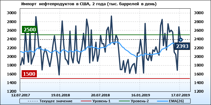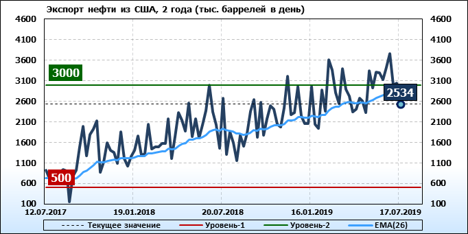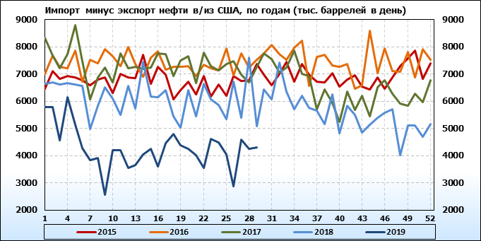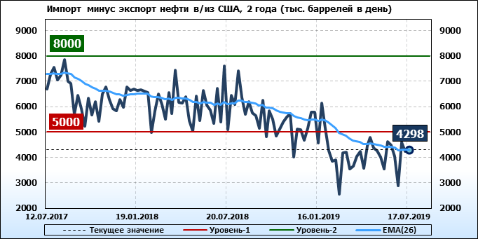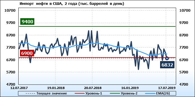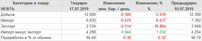 Добыча, импорт, экспорт нефти. США. EIA. Данные на 17.07.2019