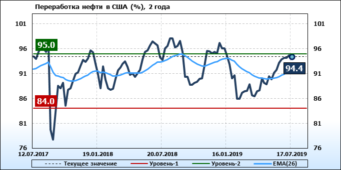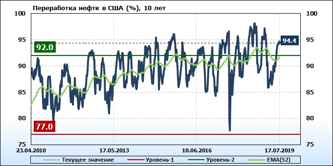 Коммерческие запасы нефти в США, EIA. Данные на 17.07.2019