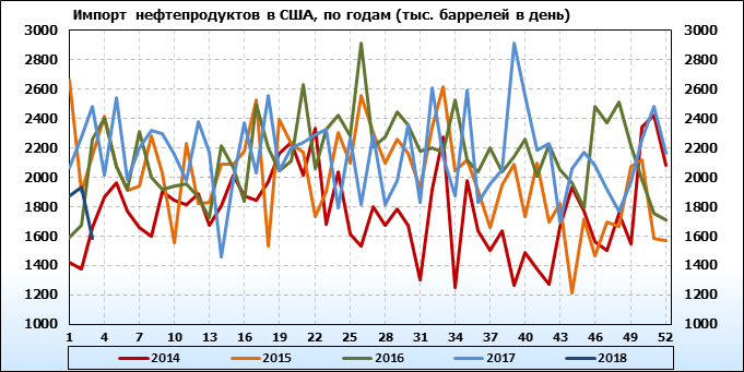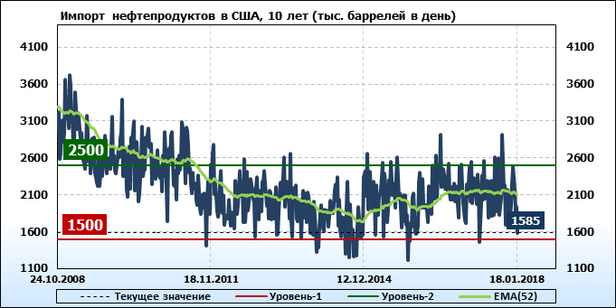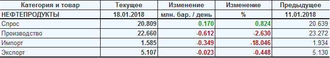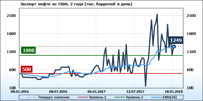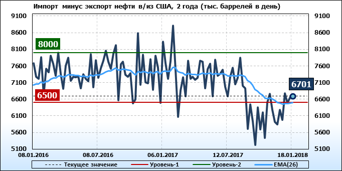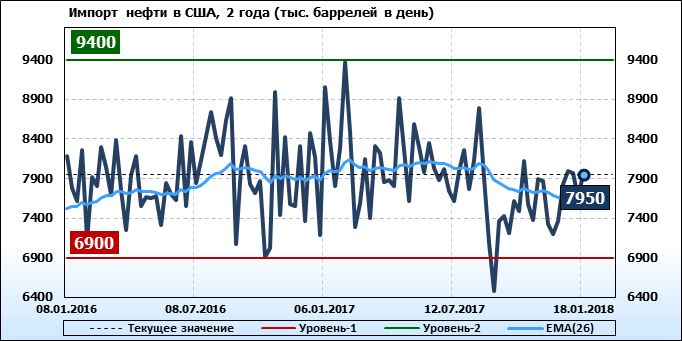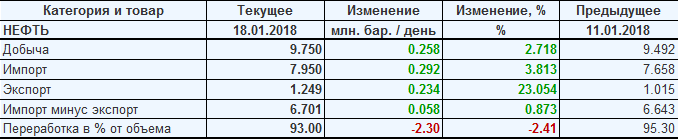 Добыча, импорт, экспорт нефти. США. EIA. Данные на 18.01.2018