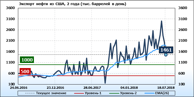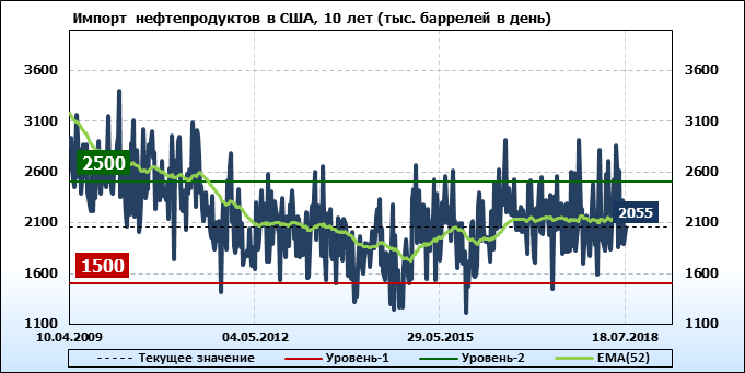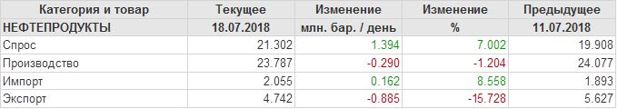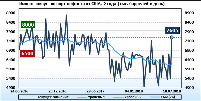 Добыча, импорт, экспорт нефти. США. EIA. Данные на 18.07.2018