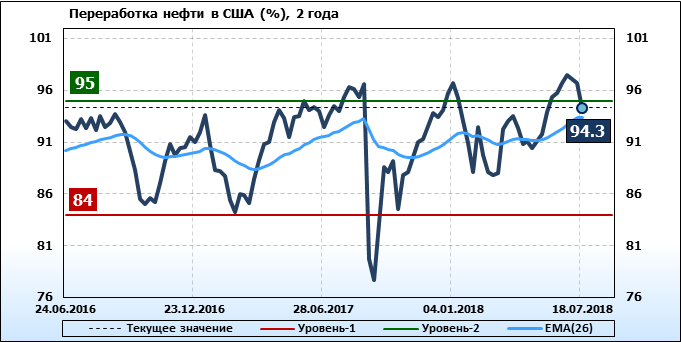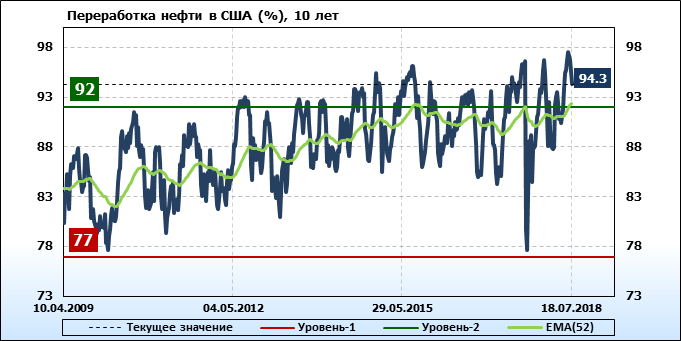 Коммерческие запасы нефти в США, EIA. Данные на 18.07.2018. Подробно
