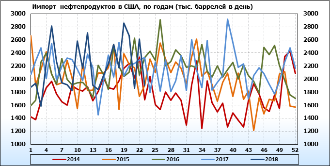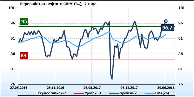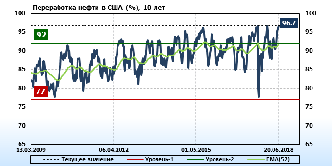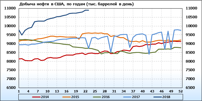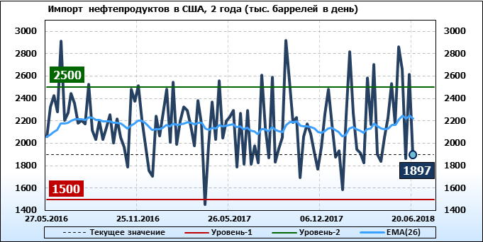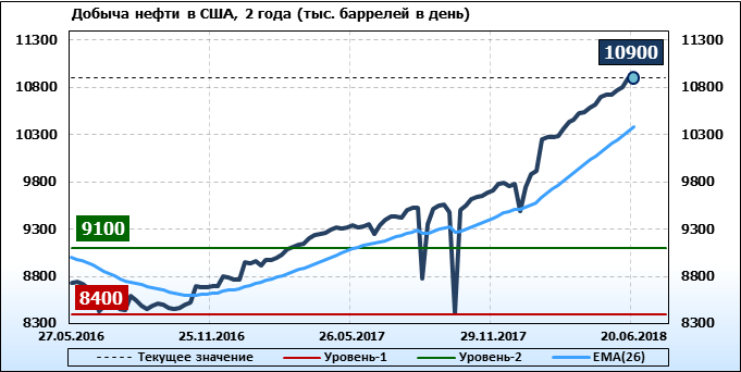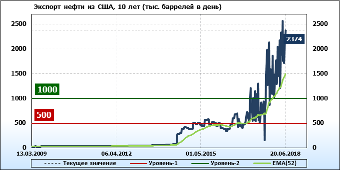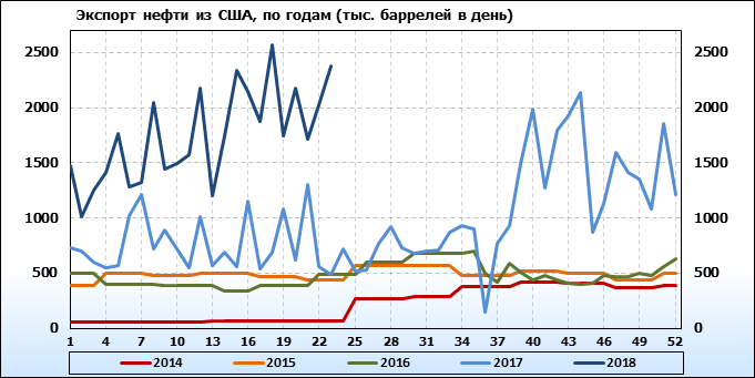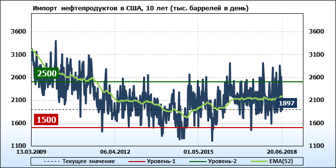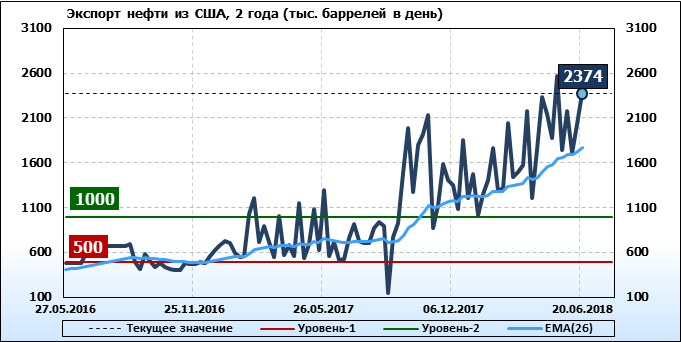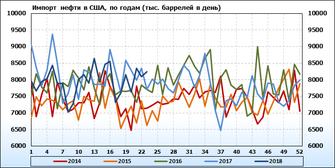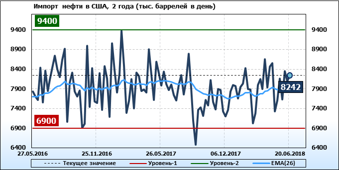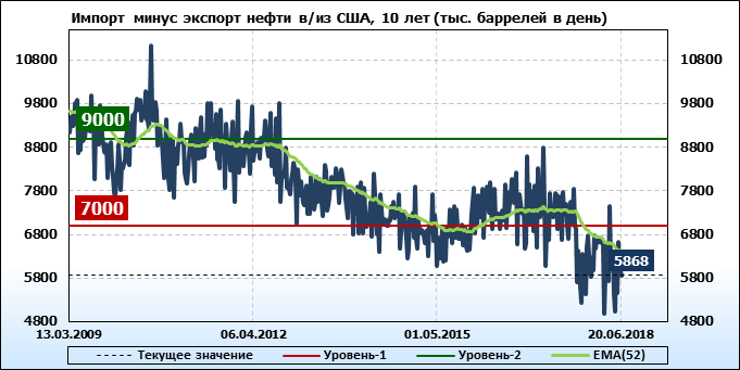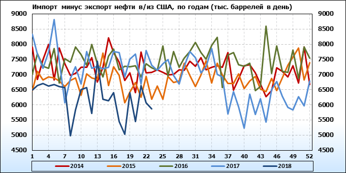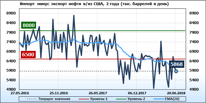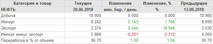 Добыча, импорт, экспорт нефти. США. EIA. Данные на 20.06.2018