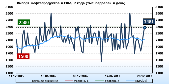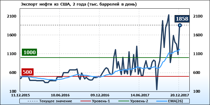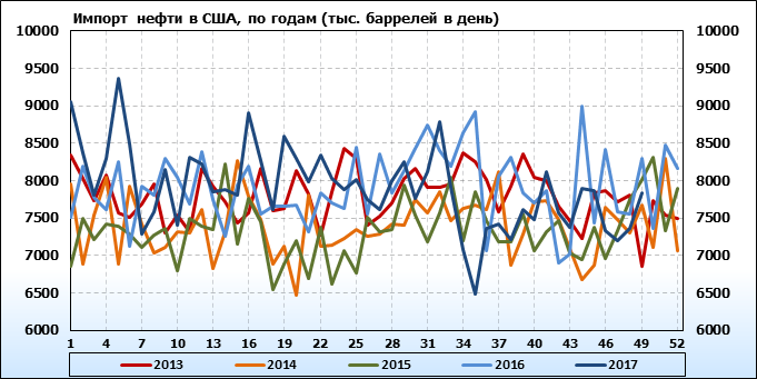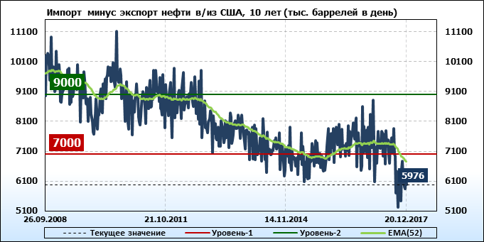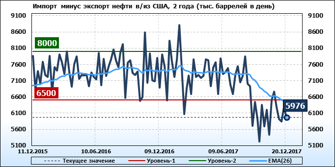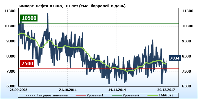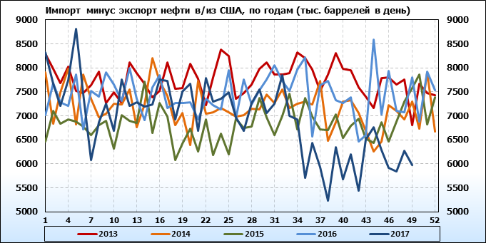 Добыча, импорт, экспорт нефти. США. EIA. Данные на 20.12.2017