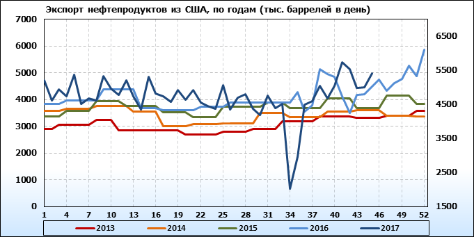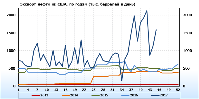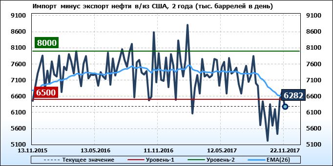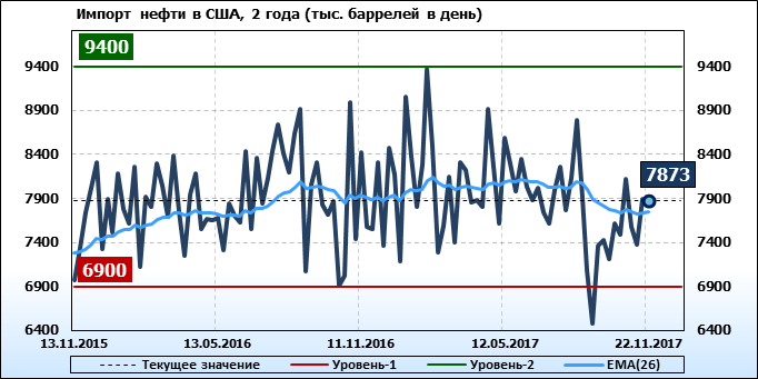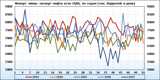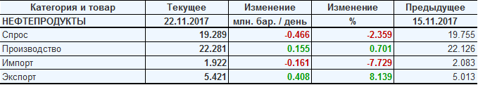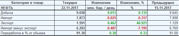 Добыча, импорт, экспорт нефти. США. EIA. Данные на 22.11.2017