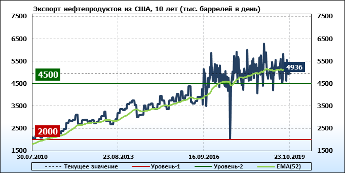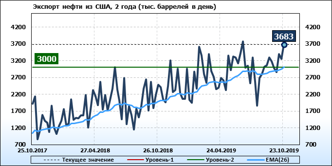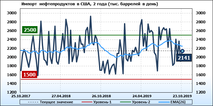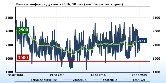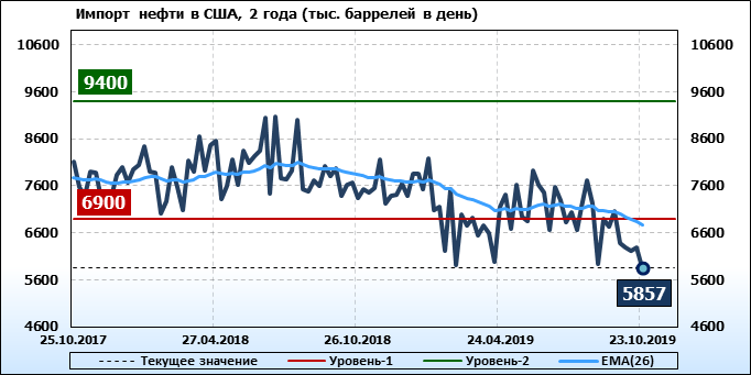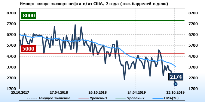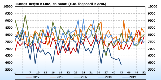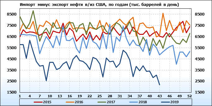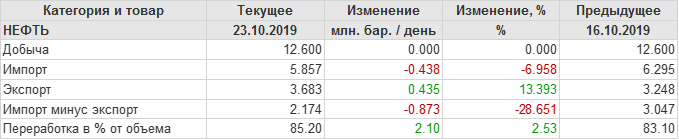 Добыча, импорт, экспорт нефти. США. EIA. Данные на 23.10.2019