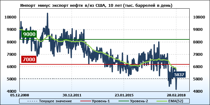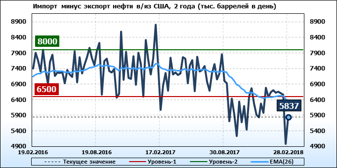 Добыча, импорт, экспорт нефти. США. EIA. Данные на 28.02.2018
