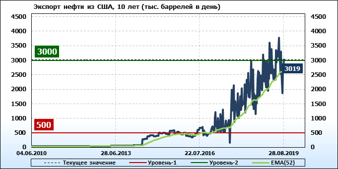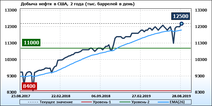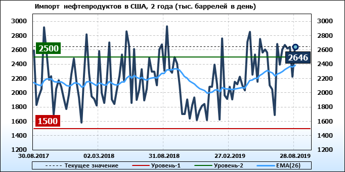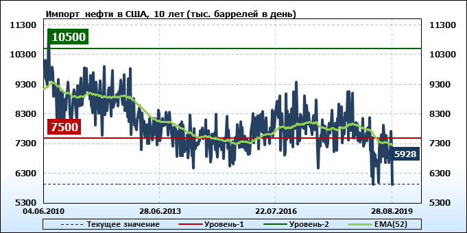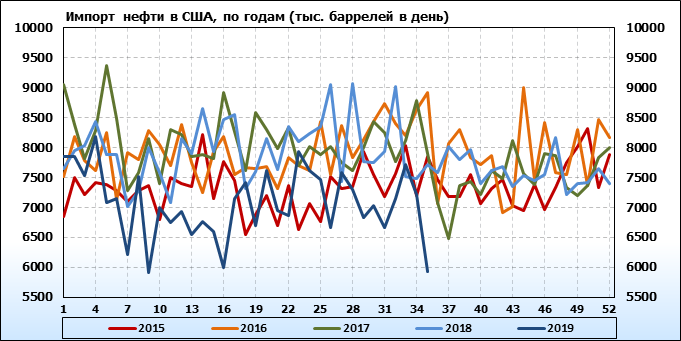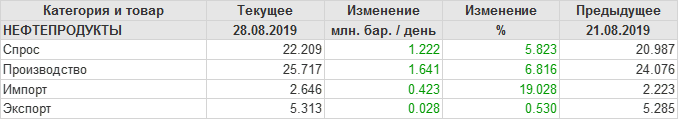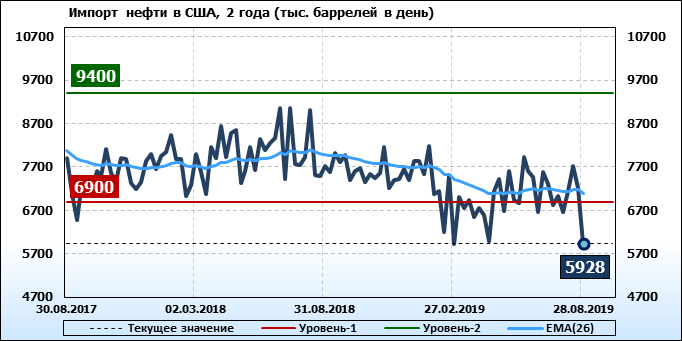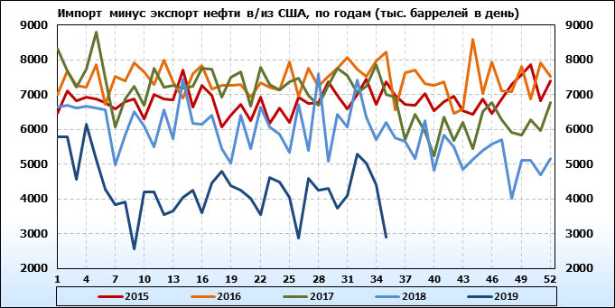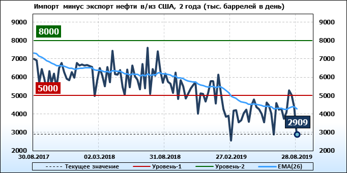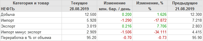 Добыча, импорт, экспорт нефти. США. EIA. Данные на 28.08.2019
