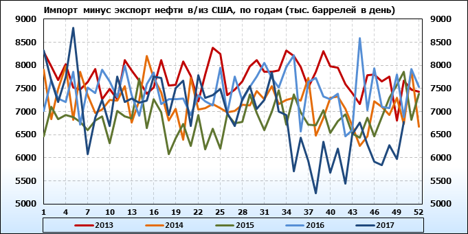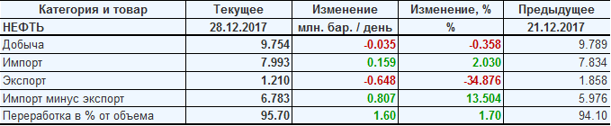 Добыча, импорт, экспорт нефти. США. EIA. Данные на 28.12.2017