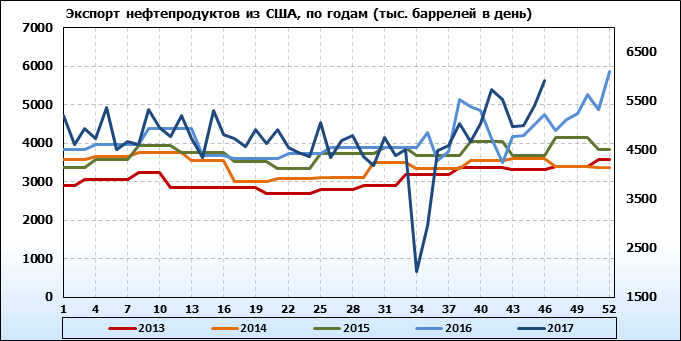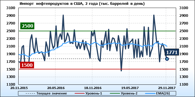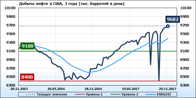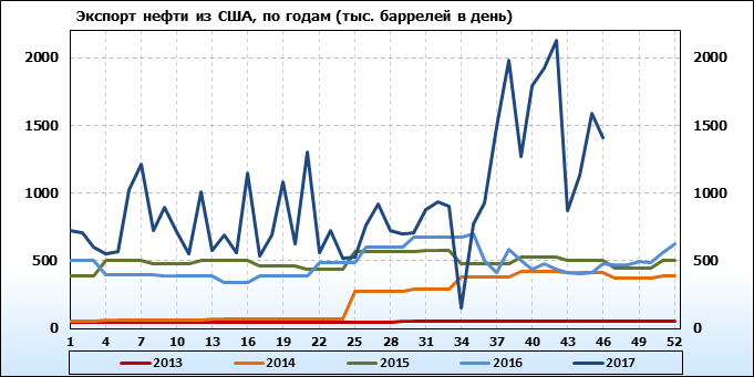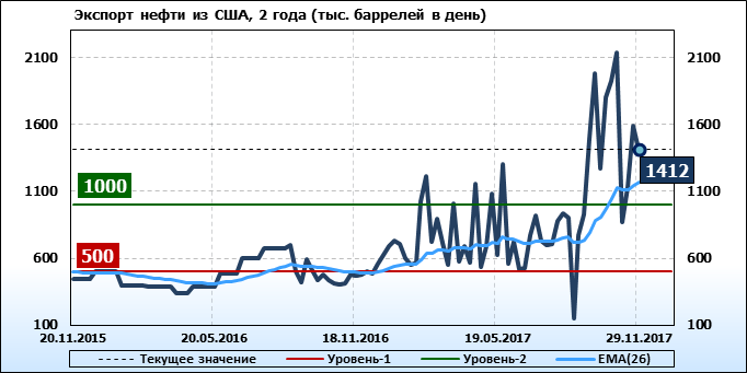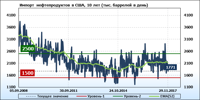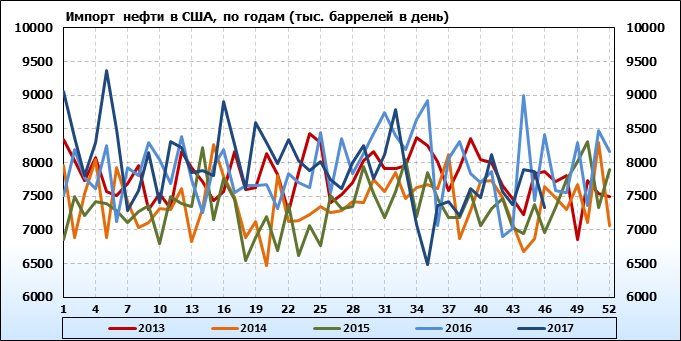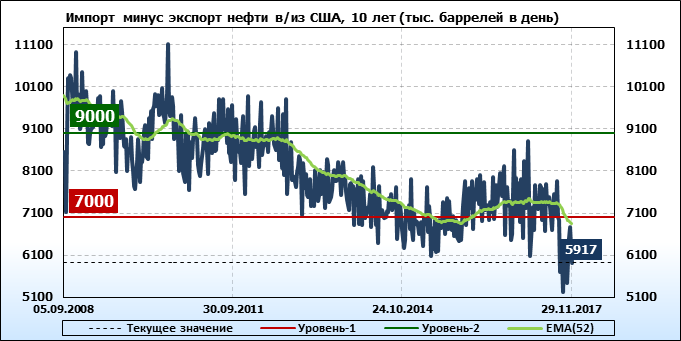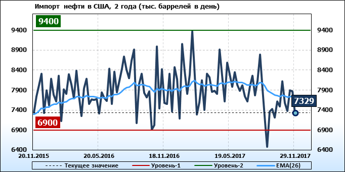 Добыча, импорт, экспорт нефти. США. EIA. Данные на 29.11.2017