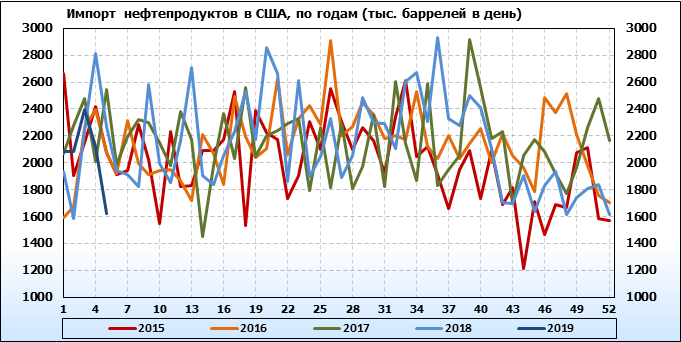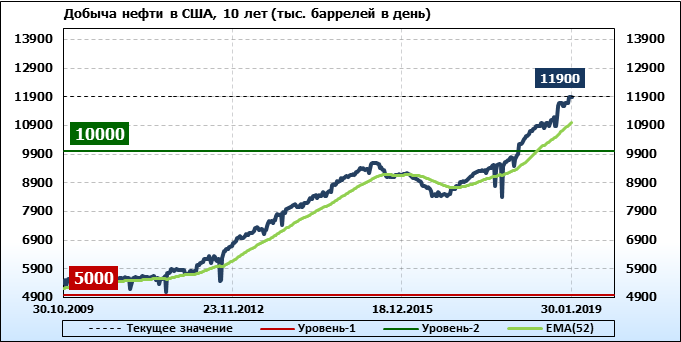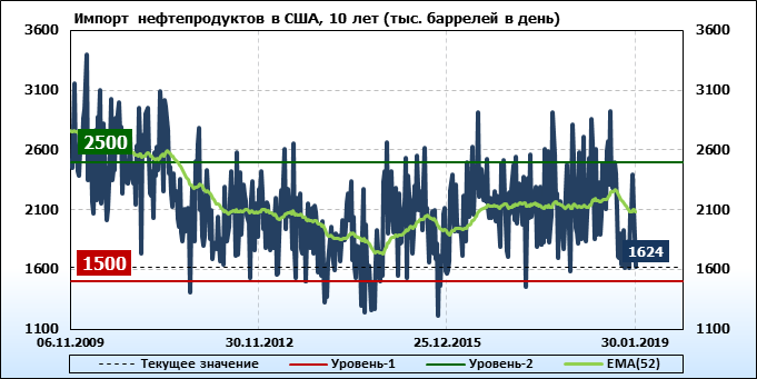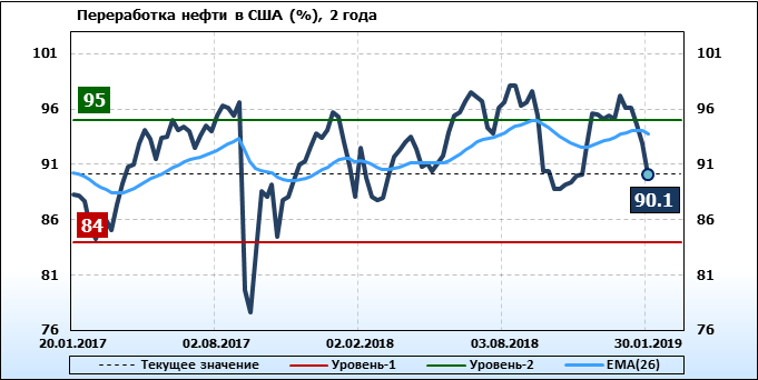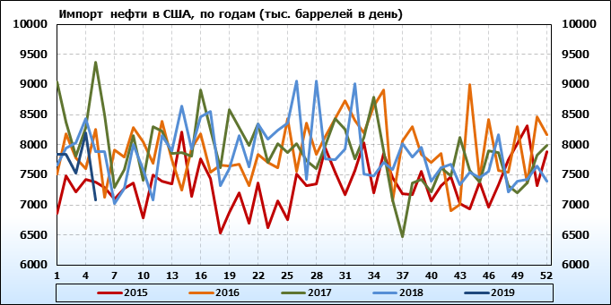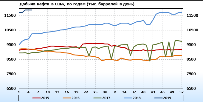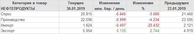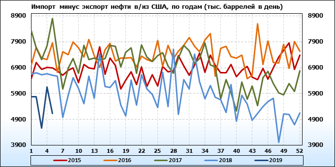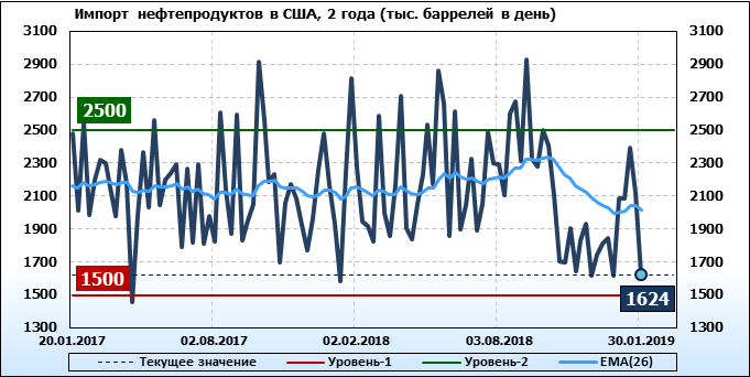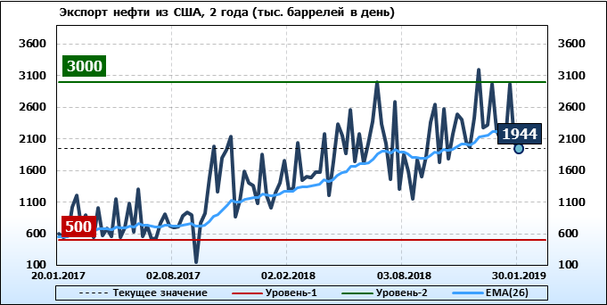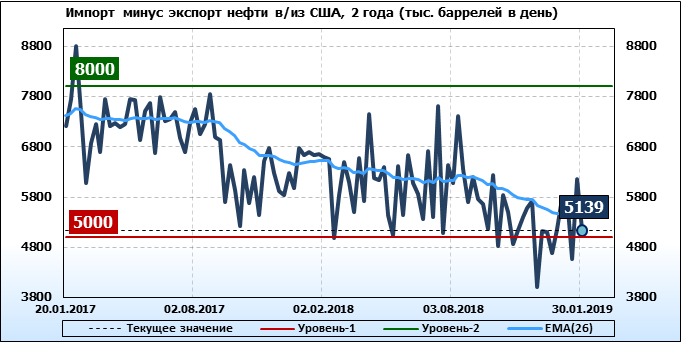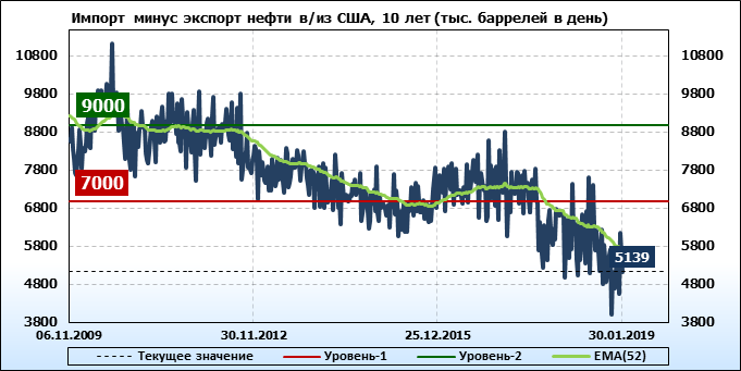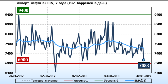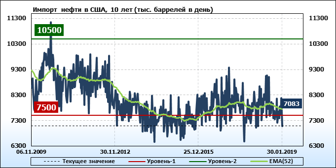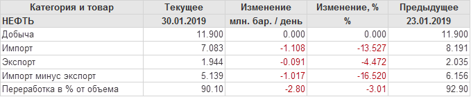 Добыча, импорт, экспорт нефти. США. EIA. Данные на 30.01.2019