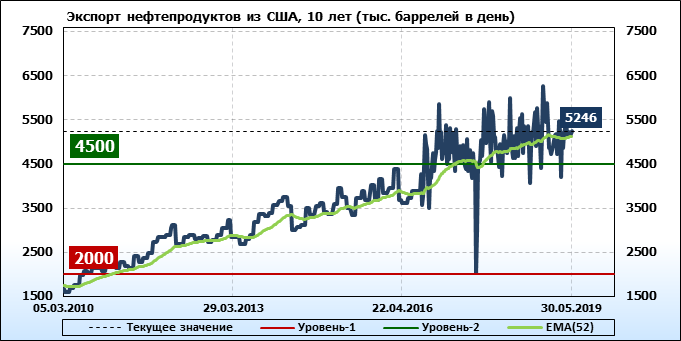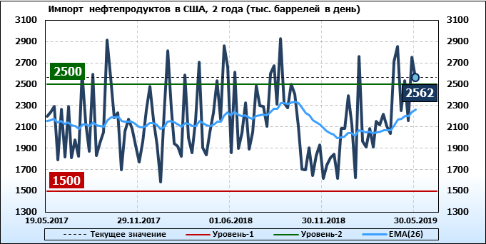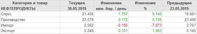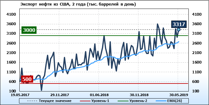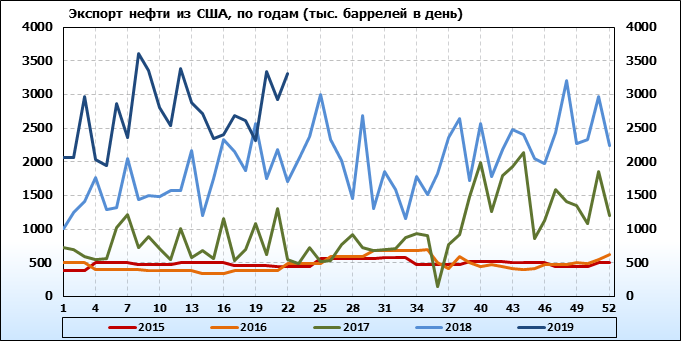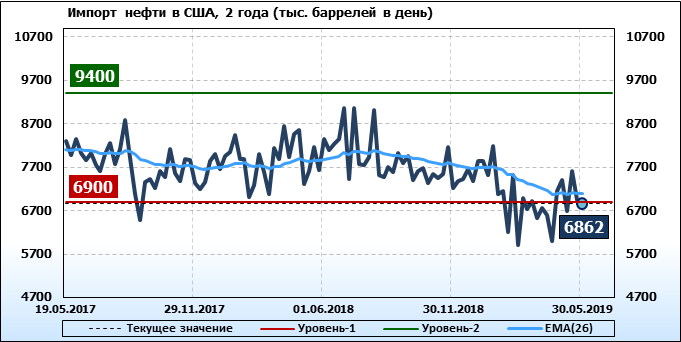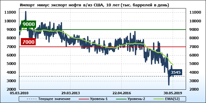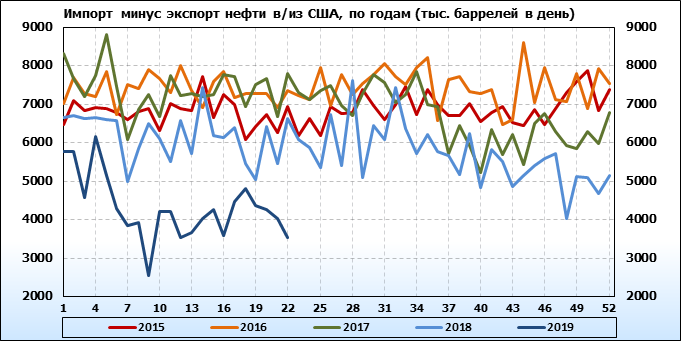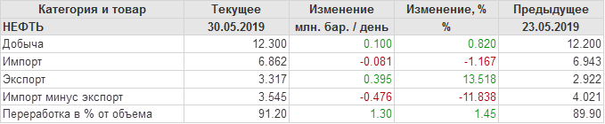 Добыча, импорт, экспорт нефти. США. EIA. Данные на 30.05.2019