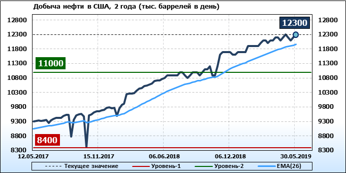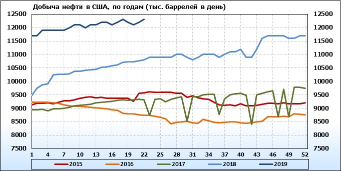 Глобальный нефтяной рынок зажат в тиски под действием на него разнонаправленных сил. С одной стороны, напряженность, связанная с санкциями против Ирана, оказывает поддержку рынку, с другой стороны обеспокоенность по поводу эскалации торговых войн между США и Китаем создает беспокойство по поводу снижения спроса на нефть. В текущей ситуации возникает реальная угроза снижения спроса со стороны крупных потребителей нефти, и в первых рядах находится, естественно, Китай. Тем не менее, США продолжают наращивать добычу нефти, чтобы занять лидирующие позиции в мире. Когда страны ОПЕК+ приняли решение с начала текущего года сокращать добычу нефти, тем самым подняв нефтяные котировки на 40%, США активно начала наращивать добычу.