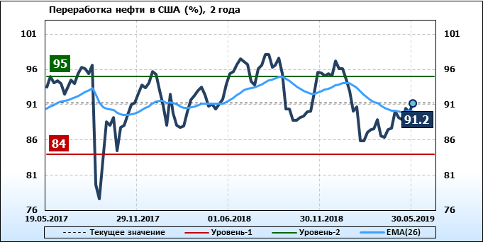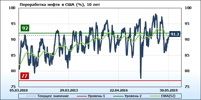 Коммерческие запасы нефти в США, EIA. Данные на 30.05.2019