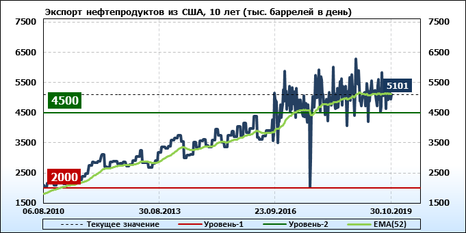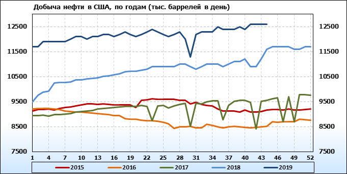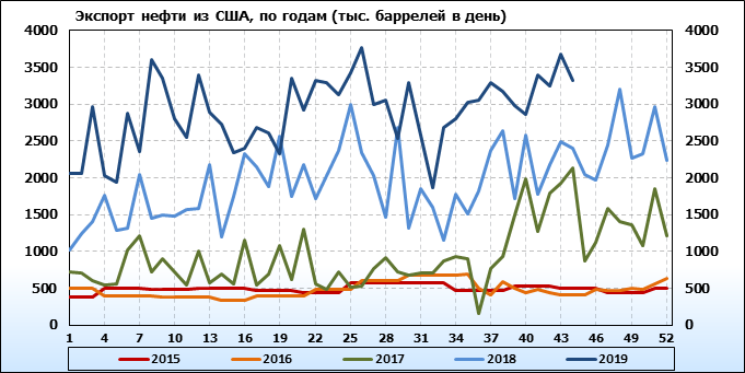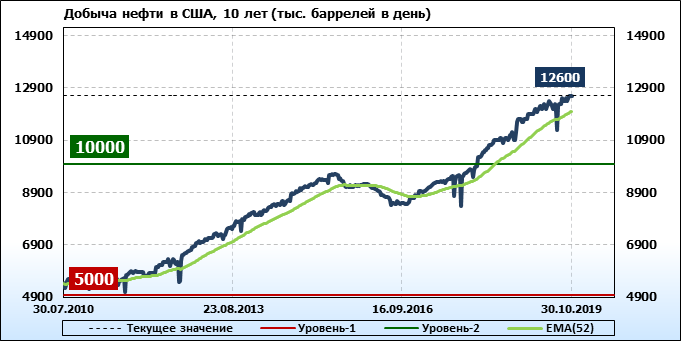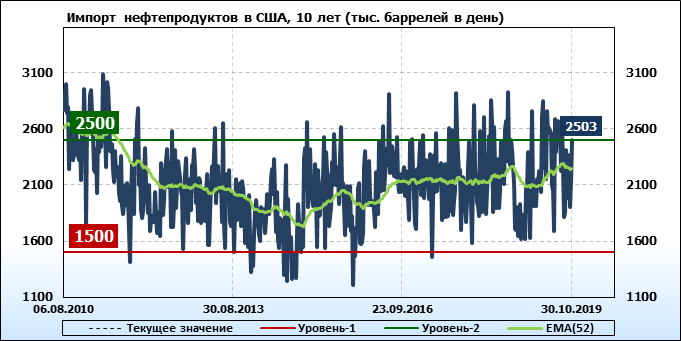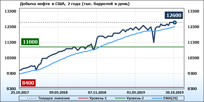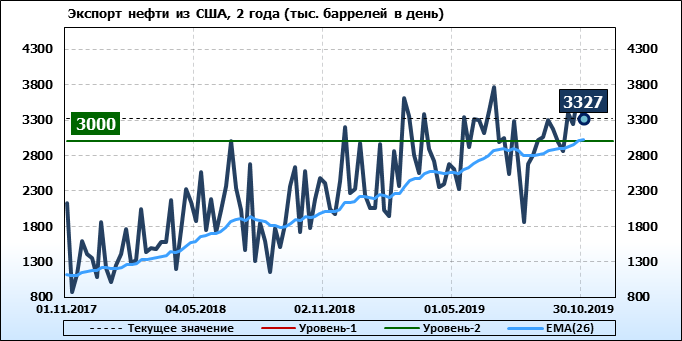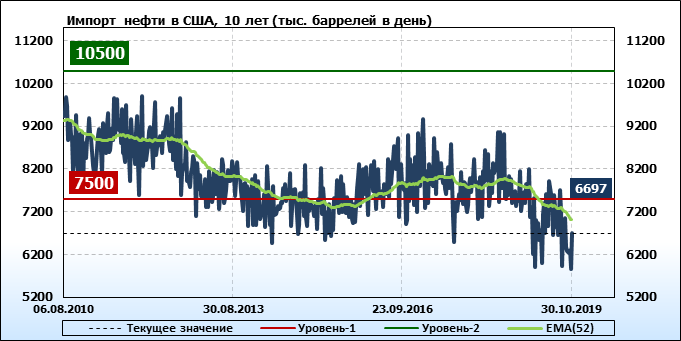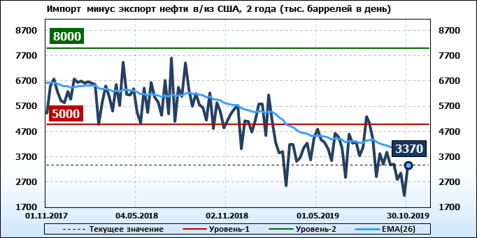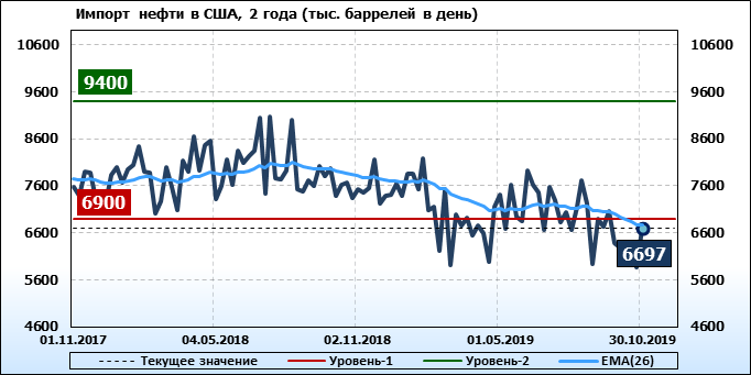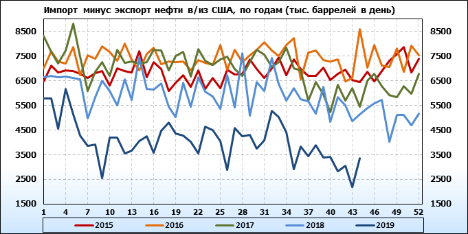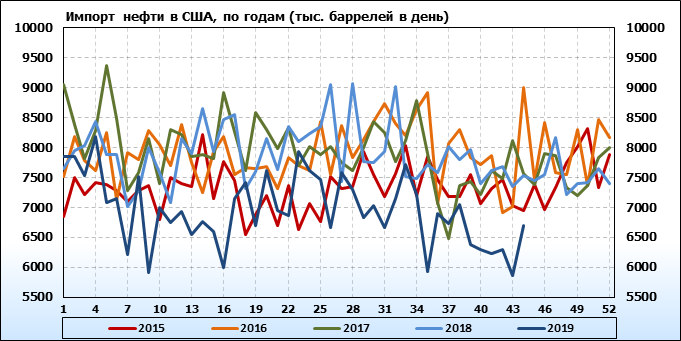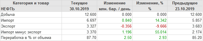 Добыча, импорт, экспорт нефти. США. EIA. Данные на 30.10.2019