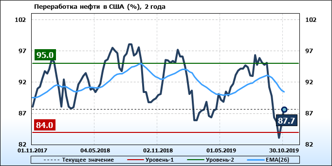 Коммерческие запасы нефти в США, EIA. Данные на 30.10.2019
