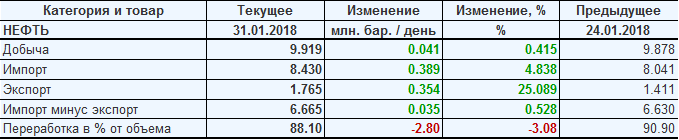Добыча, импорт, экспорт нефти. США. EIA. Данные на 31.01.2018
