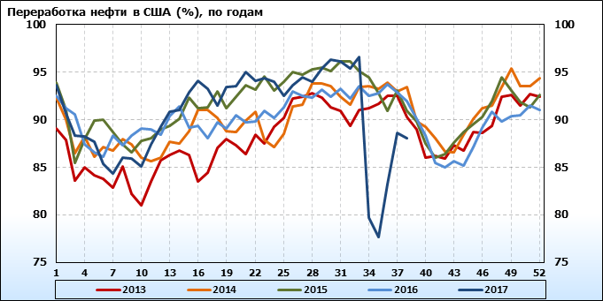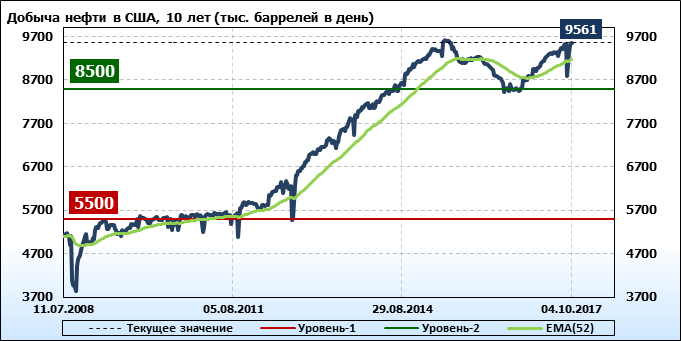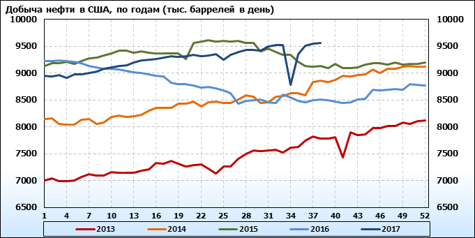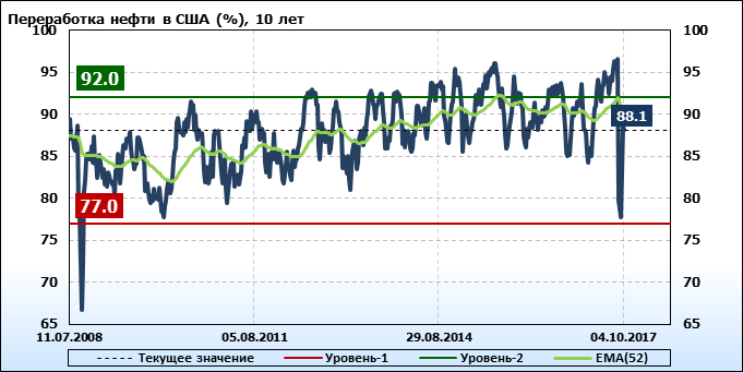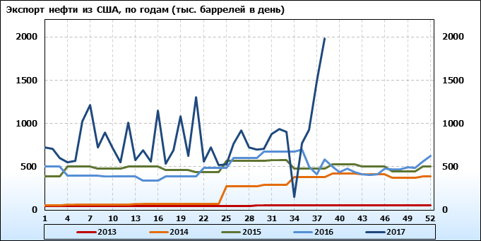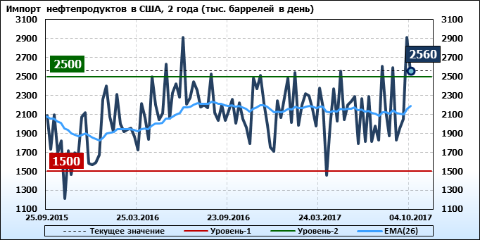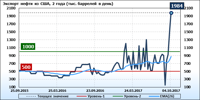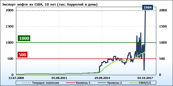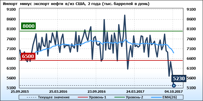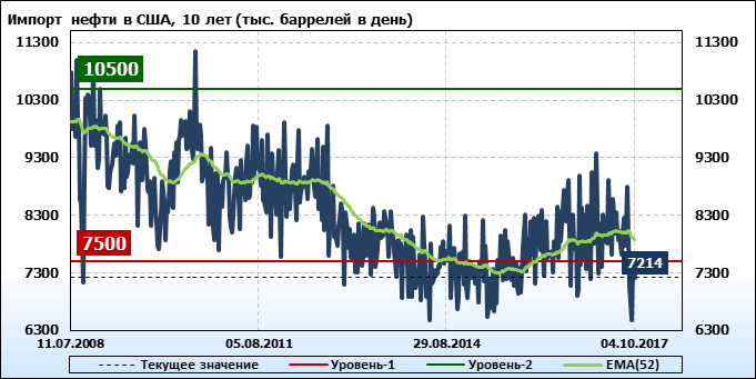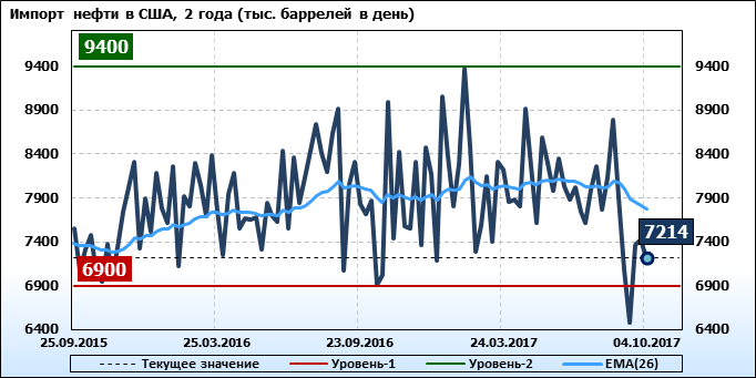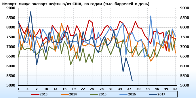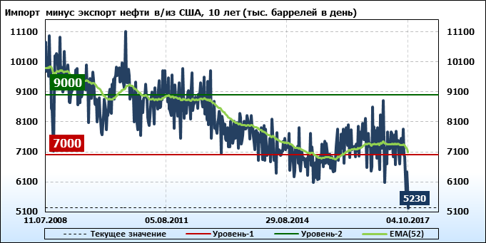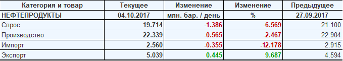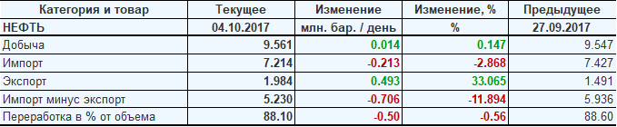 Добыча, импорт, экспорт нефти. США. EIA (U.S. Energy Information Administration). Данные на 04.10.2017